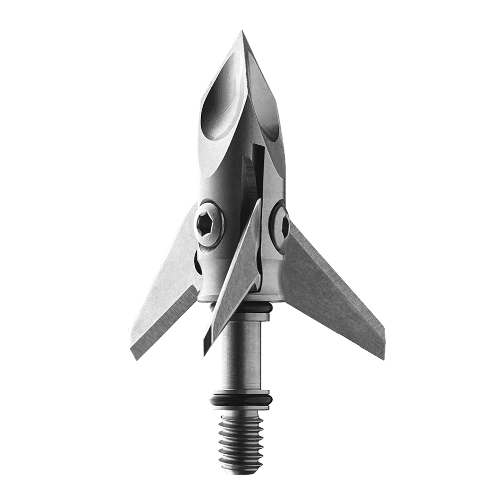 Cantilevered Blades fix the blade positioning of the broadhead over the shaft of the arrow. This offset creates a devastating vortex cut, resulting in the most aerodynamic broadhead on the market.